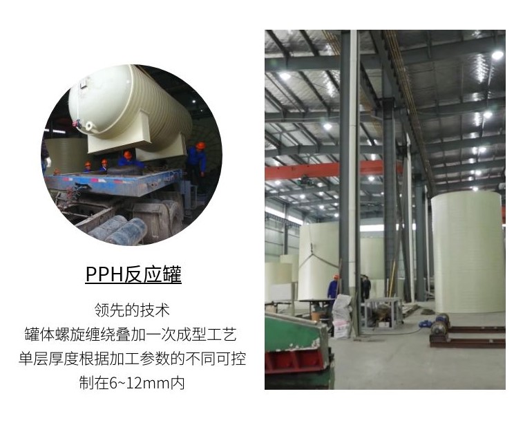 The one-time forming process of lithium carbonate PPH reaction tank adopts spiral extrusion winding technology, and the quality reaches the international advanced level. The main processes are tank winding, external welding, internal seam welding, and nozzle installation.